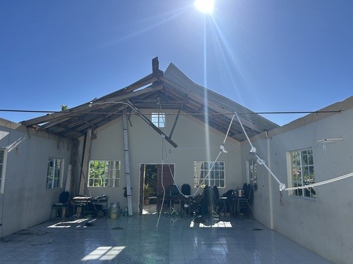 We are focusing on one thing - a new roof for the church! Here are a couple pictures of what it looks like and how they are making due for now.