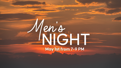 Join us for Men’s Night on May 1st from 7-9pm at the church in the Fireside Room.